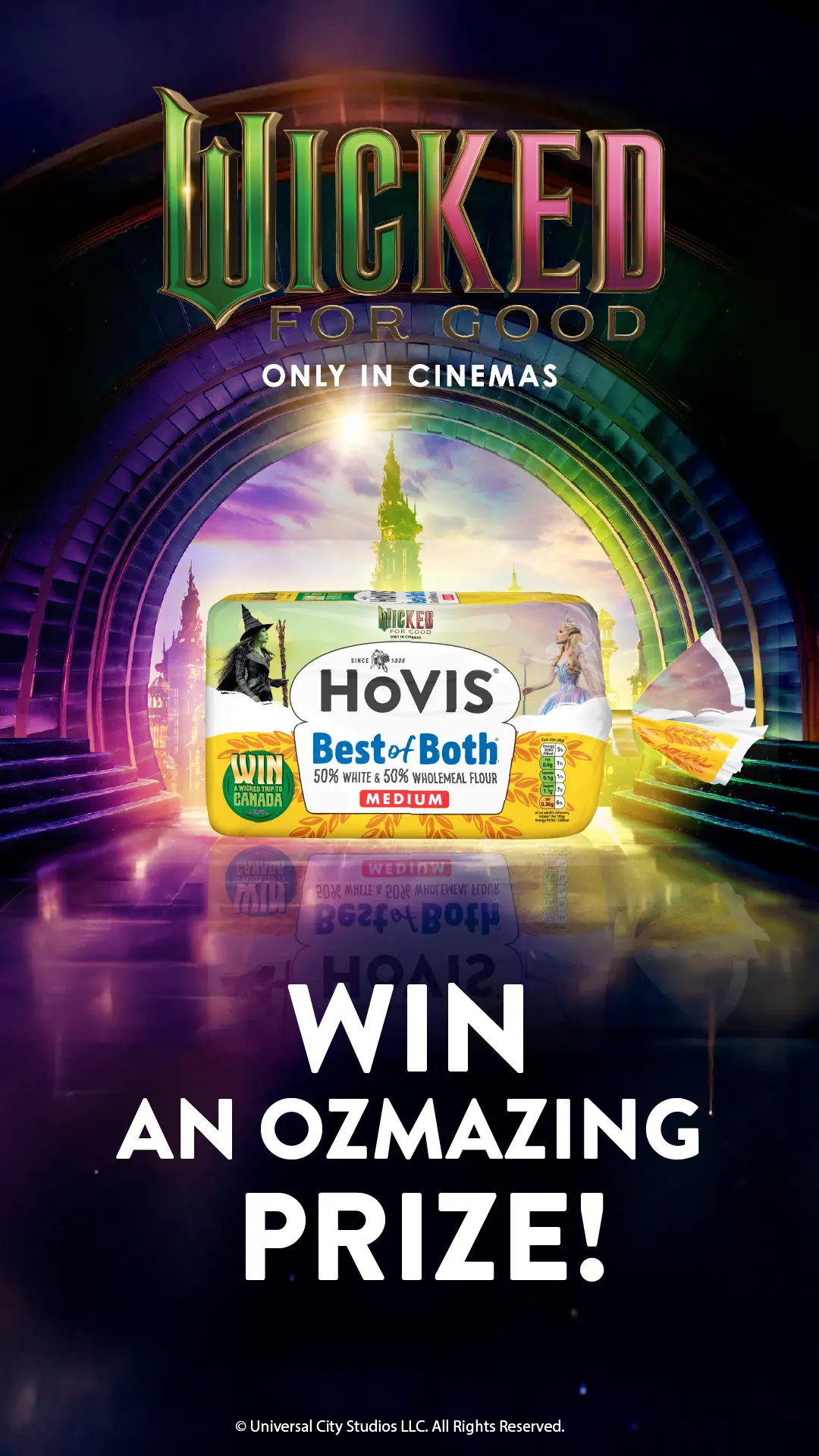 Hovis® are delighted to collaborate with Universal on their highly anticipated sequel Wicked: For Good! We’re releasing a one of a kind Wicked: For Good packaging design for the Hovis® Best of Both® loaves instores which will have a QR code you can scan. Through this you can enter our Competition and have a chance to win a family trip to Canada!